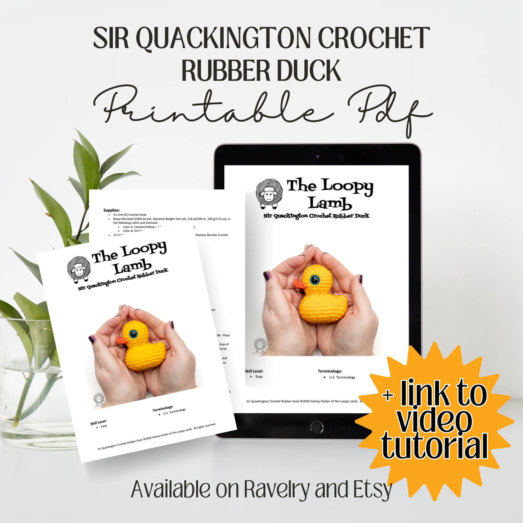 The Sir Quackington Crochet Rubber Duck pattern is available as a printable, ad-free PDF, perfect for printing or saving to your device. Includes a clean, easy-to-read layout so you can crochet without distractions.